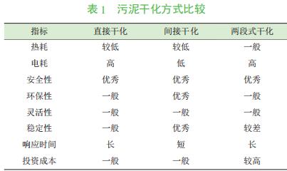 表 1 為 3 種污泥干化方式的比較結(jié)果。